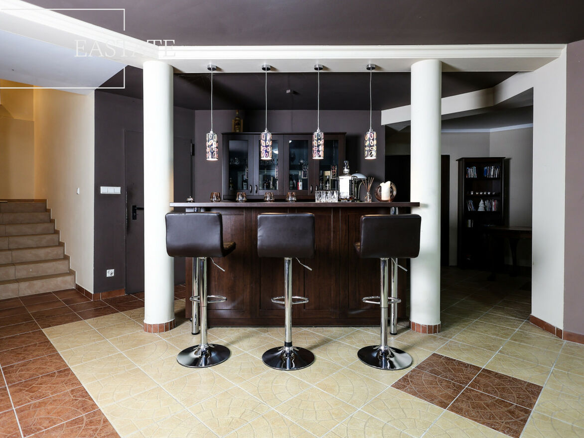 - Piwnica (146,8 m²): klub/bar/kino, pomieszczenie pod SPA/saunę, kotłownia, schowek